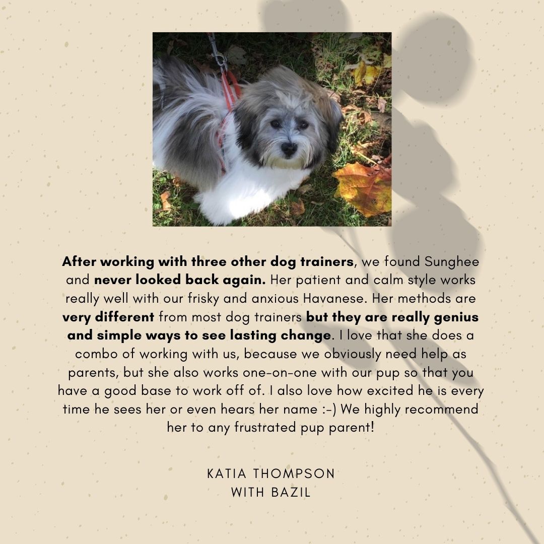 Hi! my name is Sunghee [seong-hee] and just like a lot of you, I’m a wife, and a mom of a crazy dog and a demanding cat. But I just happened to be a dog trainer too!